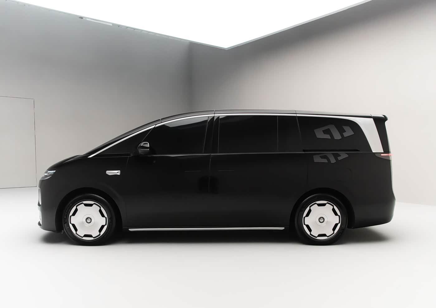 再来看车身侧面部分,车身侧面是零跑D99最能体现MPV优势的地方。超过5.2米的车长、近2米的车宽搭配3110mm的轴距,让整车姿态显得格外大气。平直的车顶线条保证了后排头部空间,双色车身营造出悬浮车顶效果,既时尚又避免了MPV常见的臃肿感。贯穿式腰线从车头延伸至车尾,搭配隐藏式门把手,不仅让车身更显修长,还有效降低了风阻。轮眉与侧裙的隆起筋线增添了力量感,“大饼式”轮毂则提升了整车档次。值得一提的是,D柱上的“流光之翼”镀铬饰板延续了D系列设计语言,成为侧面的标志性元素。