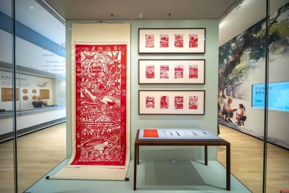 此外,新馆还精心设置考古科普展、非遗传承展、墨韵琅琊书法展等专题陈列展厅以及文创区、手工区、VR沉浸体验区、能量补给区等休闲体验空间。其中,墨韵琅琊厅系统梳理从甲骨文至明清书法的演变脉络,琅琊台刻石、陈氏三量铭文等珍贵遗存,彰显笔墨艺术与历史文脉的深度交融;非遗展厅集中展示年画、剪纸、琅耶瓷艺、茂腔等独具西海岸特色的重点非遗项目,让本土非物质文化遗产在博物馆活态传承。